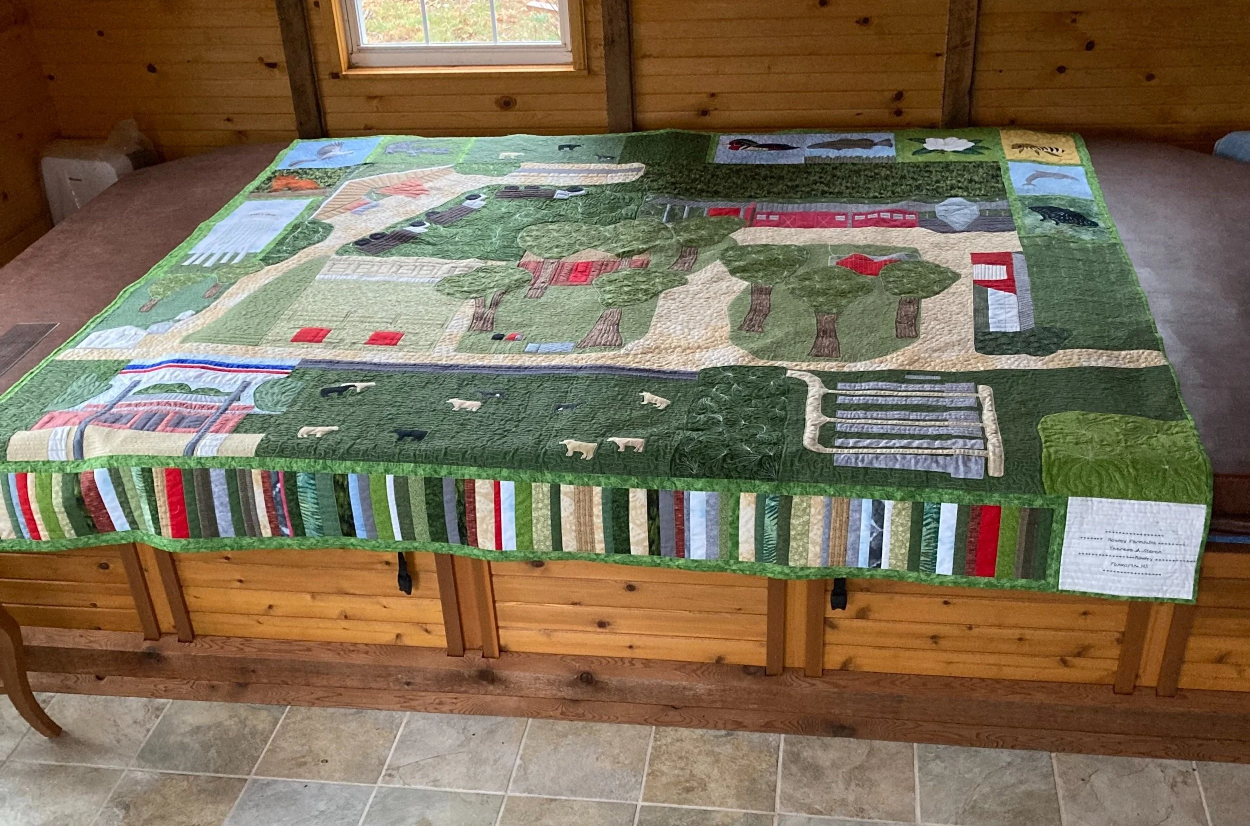 Custom made quilt of Mississippi Private Farm that includes Dairy, chicken houses, two homes, barns, sheds, cows, water tower, goat pens, etc.