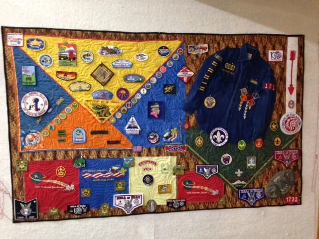 Custom made Boy Scout Memorabilia Quilted Wall Hanging.